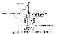 Answer:A fence post detail look similar to detail 17 below minus the reinforcements. Most fence design use the post as reinforcements dropping it below the surface a good 18 inches or more.